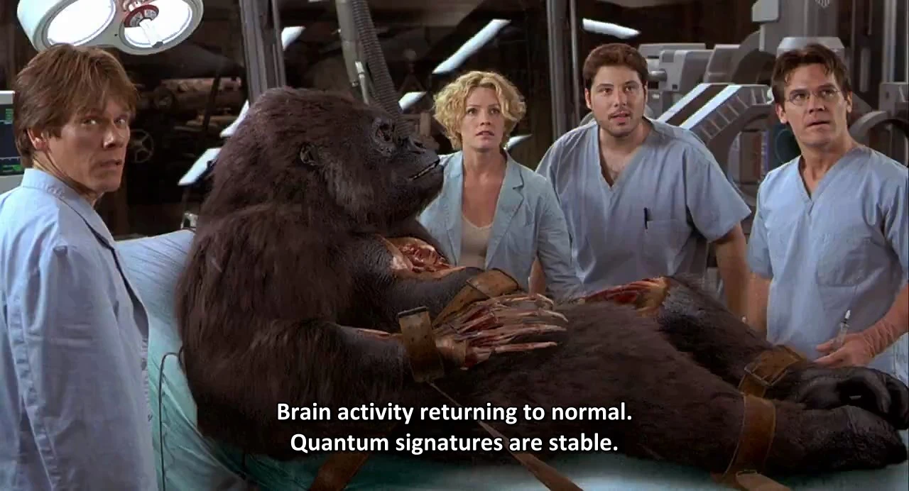 Movie Description: Cocky researcher Sebastian Caine is working on a project to make living creatures invisible. Determined to achieve the ultimate breakthrough, Caine pushes his team to move to the next phase — using himself as the subject. The test is a success, but when the process can't be reversed and Caine seems doomed to future without flesh, he starts to turn increasingly dangerous.